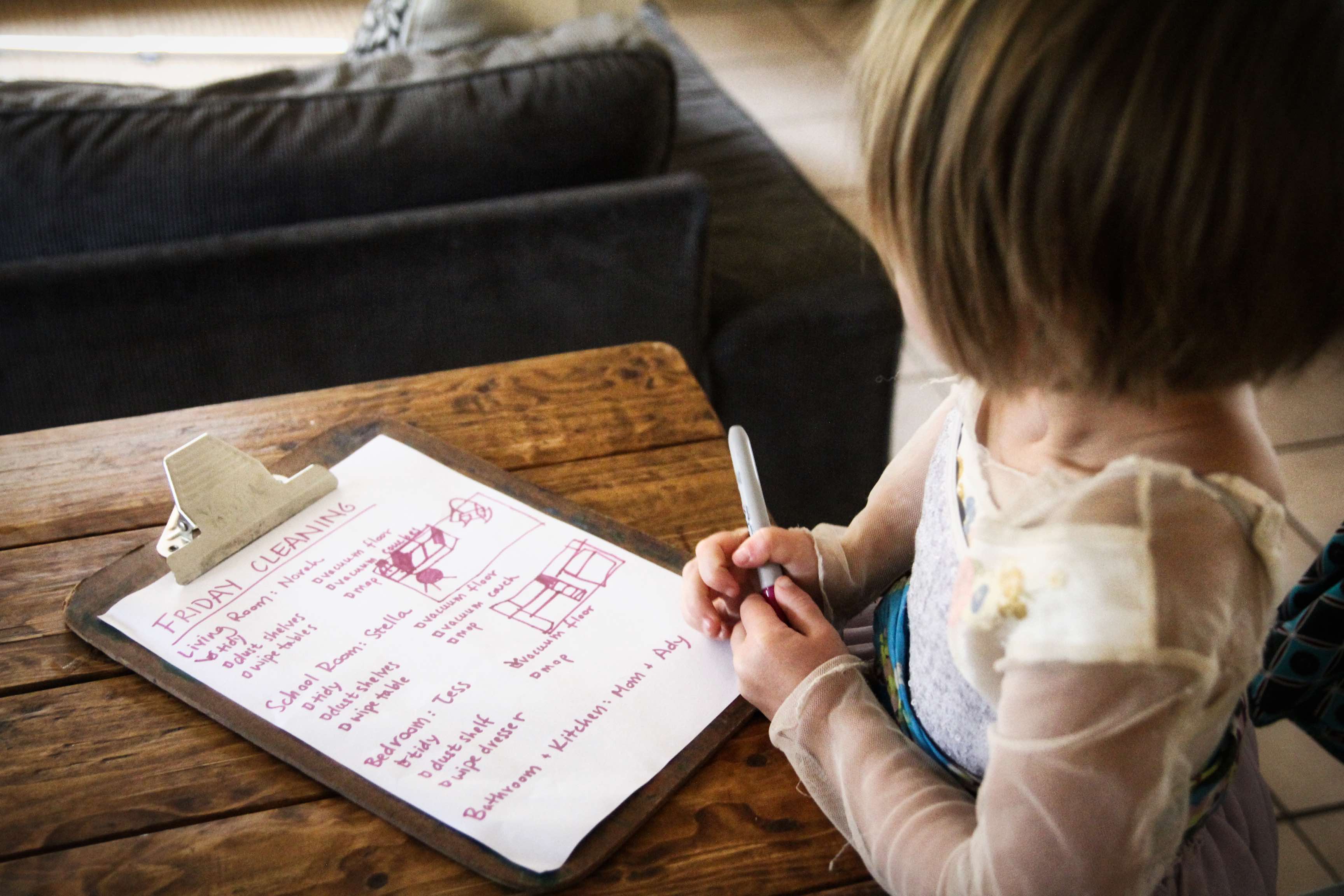 Friday cleaning // While we are so grateful to have a housekeeper who resets our home once a week, six people living in a close space means it needs a second clean. In order to teach our children responsibility for our shared home, and the practicalities of how to clean, we have implemented our Friday cleaning ritual. Usually, first thing before school, I bring out the clipboard, write everyone’s names in bright colors with the tasks they’ll need to accomplish, and turn up some inspirational music (Annie’s “It’s a Hard-Knock Life” is a favorite, for some reason 🙂 ). Though the music and fun checklist help, cheerful encouragement is often needed as I skirt from room to room, helping as needed.
